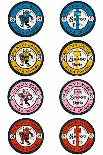 Réédition de quatre petites bobines en bois. Elles sont étiquetées Fil Au Nain.