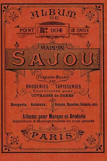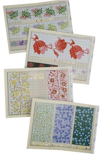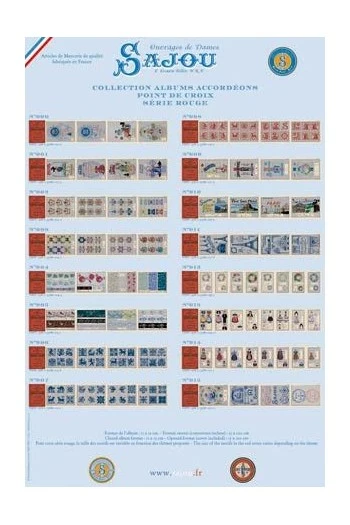 Cet album Sajou rouge en accordéon de huit pages propose des frises fleuries à broder au point de croix :