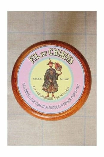 Grosse en bobines en bois Fil Au Chinois rose. Cette spectaculaire bobine est une réédition de bobines utilisées dans les usines pour le glaçage des fils. Elle mesure 18 cm de haut, le diamètre des joues est de 8 cm. En principe, ces bobines sont des modèles de travail et elles ne sont pas étiquetées. Mais nous n’avons pas résisté à les habiller avec de belles étiquettes : ici, l’étiquette Fil Au Chinois rose.