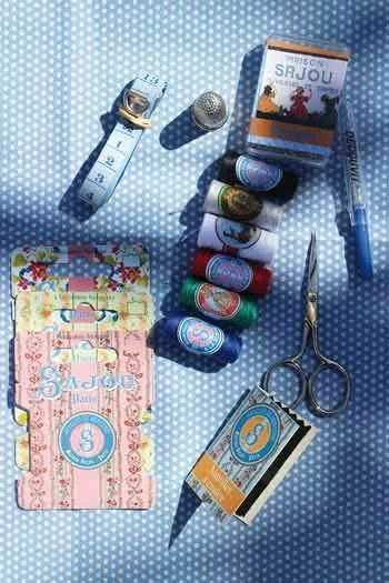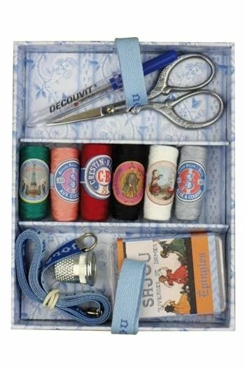 Boîte à couture Petites Filles Sajou contenant l’essentiel des fournitures de couture de base.