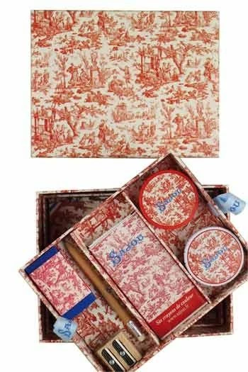 Boîte papeterie Toile de Jouy rouge.
