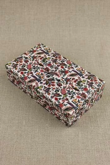 Le pompon des ciseaux est assorti aux tons de l’écrin. L’écrin est recouvert de notre tissu enduit Coquecigrues miniature. L’intérieur est coloris crème, marquage Sajou argent dans le couvercle. L’ouverture se fait au moyen d’un petit bouton poussoir coloris argent.