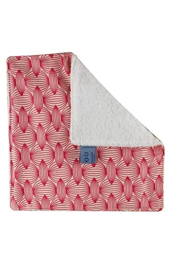 Essuie-mains toile de Jouy rose à motif géométriques et éponge de bambou