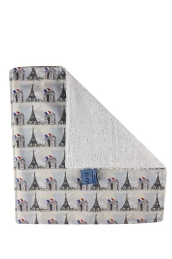 Cet essuie-mains est en viscose de bambou sur une face et dans notre tissu Ma Belle Ville de Paris coordonné 1 à motif de petites tours Eiffel sur l’autre face.