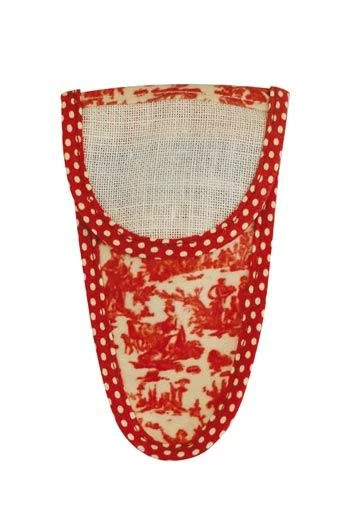 Cet étui moyen convient pour tous nos ciseaux à broder. Il est fait dans notre tissu Toile de Jouy miniature rouge Offrande à l’Amour que nous avons fait enduire en mat, et bordé d’un biais qui lui est assorti. Son rabat est en lin 12 fils blanc cassé, permettant de broder une initiale ou un petit motif. Étant donnée la taille de l’imprimé, chaque étui est unique.