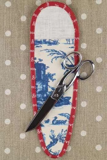 Etui porte-ciseaux en toile de Jouy bleue biais bordeaux – taille XL
