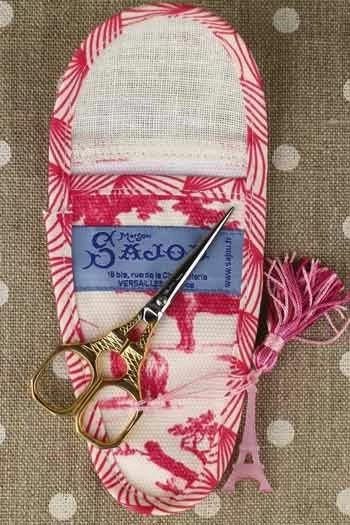 Etui porte-ciseaux en toile de Jouy rose – taille M