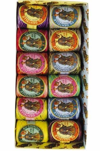 Il s’agit d’un fil de coton retors 3 bouts (ou brins) gazé et mercerisé (l’équivalent du n°80 de chez DMC). Sa présentation en petits cocons de 5 grammes (110 mètres environ) permet une utilisation facile et agréable : le fil se tire par le milieu, ce qui évite les nœuds. Chaque cocon est étiqueté.