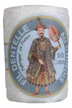 Il s’agit d’un fil de coton retors 3 bouts (ou brins) gazé et mercerisé (l’équivalent du n°80 de chez DMC). Sa présentation en petits cocons de 5 grammes (110 mètres environ) permet une utilisation facile et agréable : le fil se tire par le milieu, ce qui évite les nœuds. Chaque cocon est étiqueté.