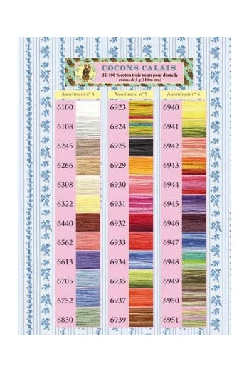 Fil dentelle cocons Calais 100 % coton – boite collection complète 72 coloris