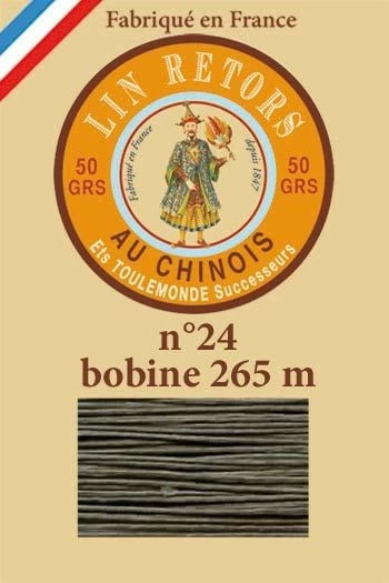 Fil de lin glacé n°24 cuir et reliure – kaki foncé – Fil Au Chinois – bobine 265 m