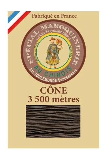 Polycoton glacé spécial maroquinerie 28/2. Le « 2 » signifie que le fil est retordu en deux bouts, ou brins.