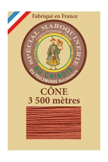 Polycoton glacé spécial maroquinerie 28/2. Le « 2 » signifie que le fil est retordu en deux bouts, ou brins.