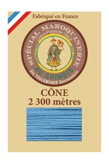 Fil maroquinerie polycoton glacé Fil Au Chinois grosseur 28/3 – Turquoise n° 677 – Grand cône 2 300 m