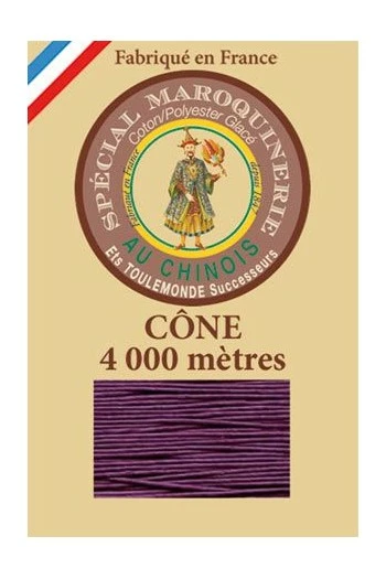 Fil maroquinerie polycoton glacé Fil Au Chinois grosseur 50/3 – Violet n° 218 – Grand cône 4 000 m