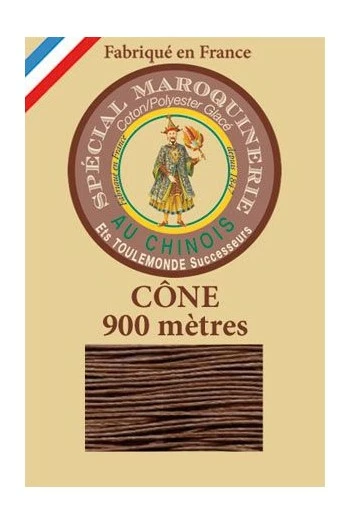 Fil maroquinerie polycoton glacé Fil Au Chinois grosseur 28/2- Marron n° 276 – Petit cône 900 m