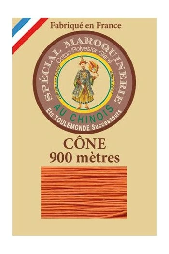 Fil maroquinerie polycoton glacé Fil Au Chinois grosseur 28/2- Oranger n° 419 – Petit cône 900 m