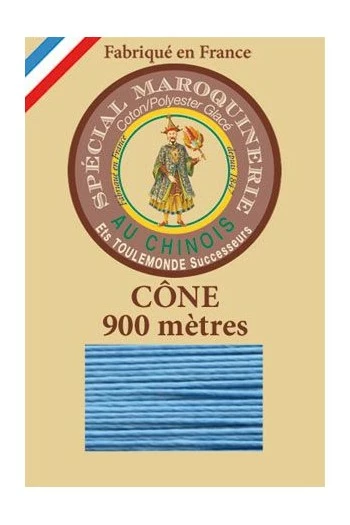 Fil maroquinerie polycoton glacé Fil Au Chinois grosseur 28/2- Turquoise n° 677 – Petit cône 900 m