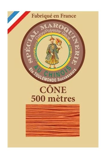 Fil maroquinerie polycoton glacé Fil Au Chinois grosseur 28/4- Oranger n° 419 – Petit cône 500 m
