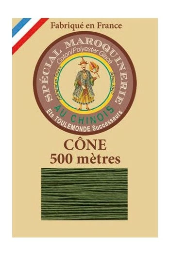 Fil maroquinerie polycoton glacé Fil Au Chinois grosseur 28/4- Chartreuse n° 735 – Petit cône 500 m