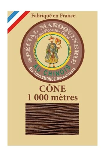 Fil maroquinerie polycoton glacé Fil Au Chinois grosseur 50/3 – Marron n° 276 – Petit cône 1 000 m