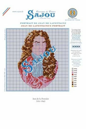 Fils broderie pour la grille de point de croix Portrait de Jean de La Fontaine – auteur des Fables