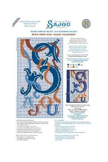 Kit de point croix bloc-notes bleu allégorie Sajou.