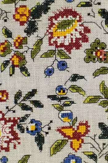 Brodé sur du lin 12 fils, cela donne un ouvrage de 30,8 cm sur 21,7 cm.