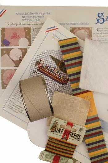 Kit de point de croix Tapisserie de Bayeux – Boîte ronde Bateau d’Harold – Collection Musées et Patrimoine