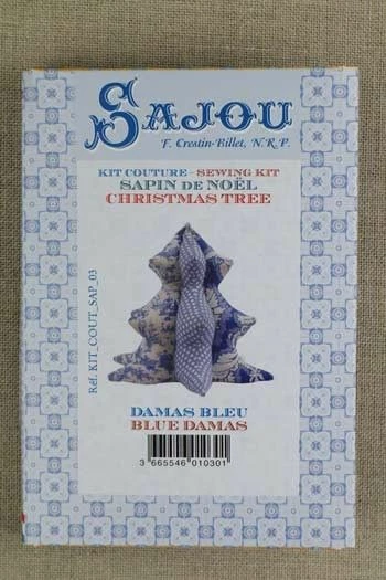 Ce kit vous permettra de réaliser un adorable petit sapin de Noël en volume avec nos tissus Damas bleus et notre toile de Jouy Offrande à l’Amour bleu miniature.