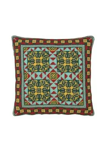 Ce kit de tapisserie au petit point dans les coloris vert et jaune, vous permettra de réaliser un coussin carré de 20 cm de côté.