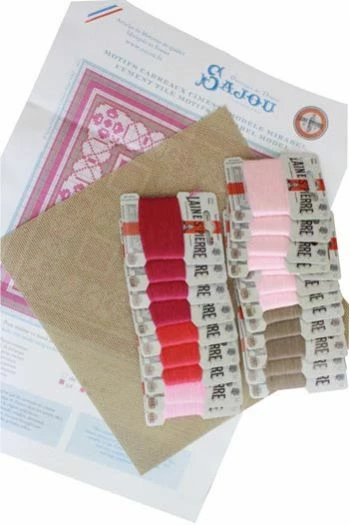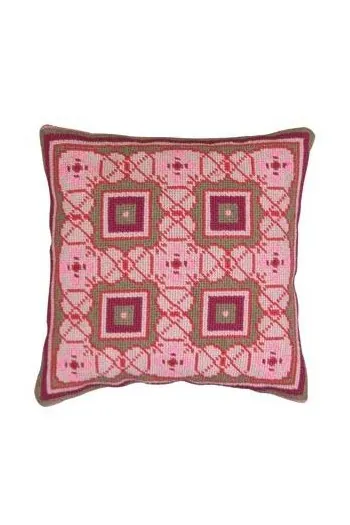 Ce kit de tapisserie au petit point dans les tons roses, vous permettra de réaliser un coussin carré de 20 cm de côté.