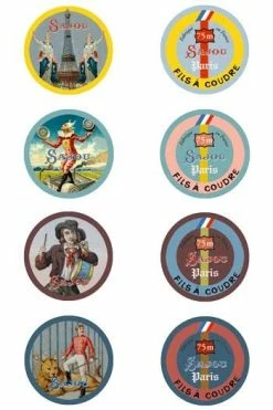 4 Bobines Bois Miniatures étiquettes Maison Sajou