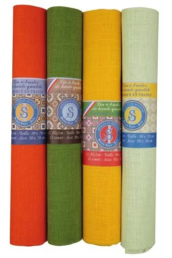 Lin broderie 12 fils au cm – 4 coupons tons acidulés