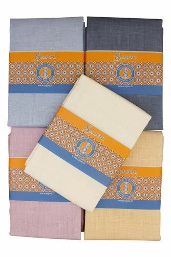 Carte en trois parties présentant nos 28 coloris de lin à broder 12 fils au cm. Chaque échantillon mesure 2 x 3 cm et les couleurs sont classées par gamme, de manière à pouvoir les comparer facilement. Les trois cartes sont reliées par un ruban Sajou.