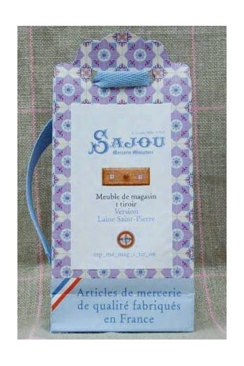 Ce meuble miniature à 1 tiroir est la réduction à l’échelle 1/12e des meubles que nous utilisons dans notre boutique Sajou Paris. Ici, la version étiquettes Laine Saint-Pierre.