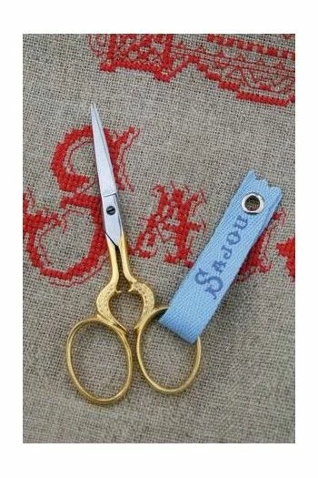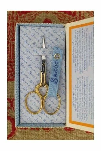 Un grand classique de la cisellerie traditionnelle française. Dans les catalogues des manufactures, ils sont le plus souvent désignés sous le nom de « modèle coeur » et étaient ceux que les jeunes gens offraient à leur promise. Ces ciseaux de broderie sont très fins et leurs lames sont très pointues. Les branches et le motif de coeur sont aurifiés jusqu’à l’entablure (partie plate des branches où se situe la vis), les lames sont, quant à elles, chromées.
