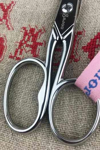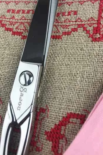 Cette paire de ciseaux de couturière est un modèle très classique, mesurant 6 pouces, soit 15,2 cm. Vous noterez la différence de forme entre les deux anneaux, celui de gauche permettant d’y glisser deux doigts, qui restent bien stables grâce à la présence du petit renflement. Ce qui confère un grand confort d’utilisation.