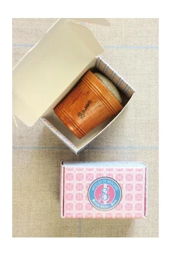 Réédition d’un petit pique-épingles en forme de baquet miniature.