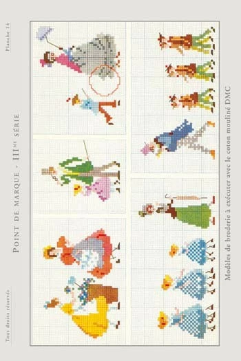 Ces archives DMC onté été rééditées avec la complicité de la Maison Sajou et de Frédérique Crestin-Billet. Ces petits albums de « Point de marque » (ancienne manière de dénommer le point de croix) sont mythiques et font partie des éditions les plus connues du patrimoine DMC.