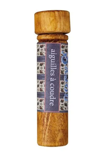 Porte-aiguilles en forme de tube qui, comme autrefois, permet de conserver ses aiguilles à coudre.