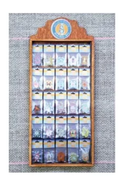 Ce présentoir est la réduction à l’échelle 1/12e du véritable présentoir 25 cartes présentant notre collection de cartes à fil. Il est fabriqué en bois de hêtre pourpre, teinté merisier.