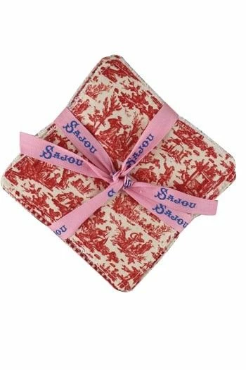 Ce set comprend trois lingettes avec notre toile de Jouy Offrande à l’Amour miniature rouge, deux lingettes dans le coordonné 1 du tissu Damas rouge et deux autres dans le coordonné 2 du tissu Damas rouge. L’autre face est en viscose de bambou. Vous pourrez les assortir avec un de nos essuie-mains.