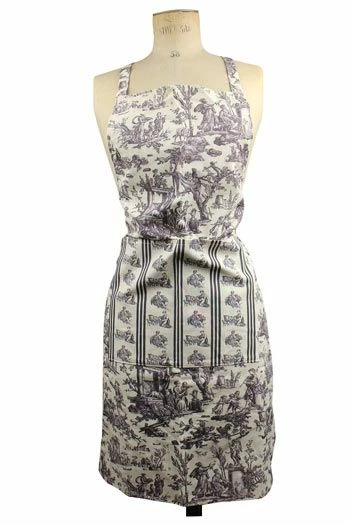 Tablier de cuisine classique toile de Jouy grise