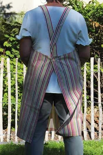 Tablier japonais dans notre tissu en coton à rayures roses et vertes