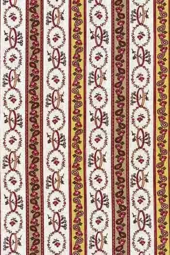 Couronnes et petites roses et quelques bleuets aussi, ce tissu est dans l’esprit des charmants petits motifs du XIXe siècle. Le fond n’est pas blanc, il s’agit d’un faux uni dans les tons beige très clair. Ce tissu peut être assorti à deux autres motifs : des rayures fleuries – Léontine coordonné 1, et des petites couronnes – Léontine coordonné 2.