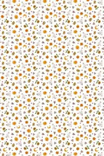 Tissu à petits motifs alsaciens, bretzels, oies, gâteaux… sur fond blanc coordonné tissu principal Farandole alsacienne.