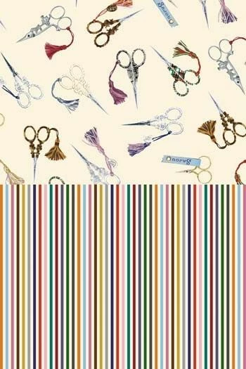 Ce tissu à rayures est le coordonné de celui représentant les ciseaux Sajou de la Collection Privée dessinés à l’aquarelle. Il reprend toutes les couleurs vives que l’on retrouve dans les pompons de ciseaux. Le fond écru du tissu est le coloris naturel du coton.