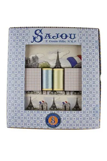 Deux coupons tissus Paris et 2 bobines de fil en boîte cadeau