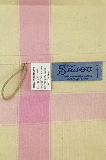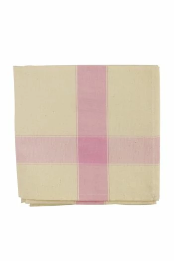 Torchon à broder coton écru avec bandes rose pâle